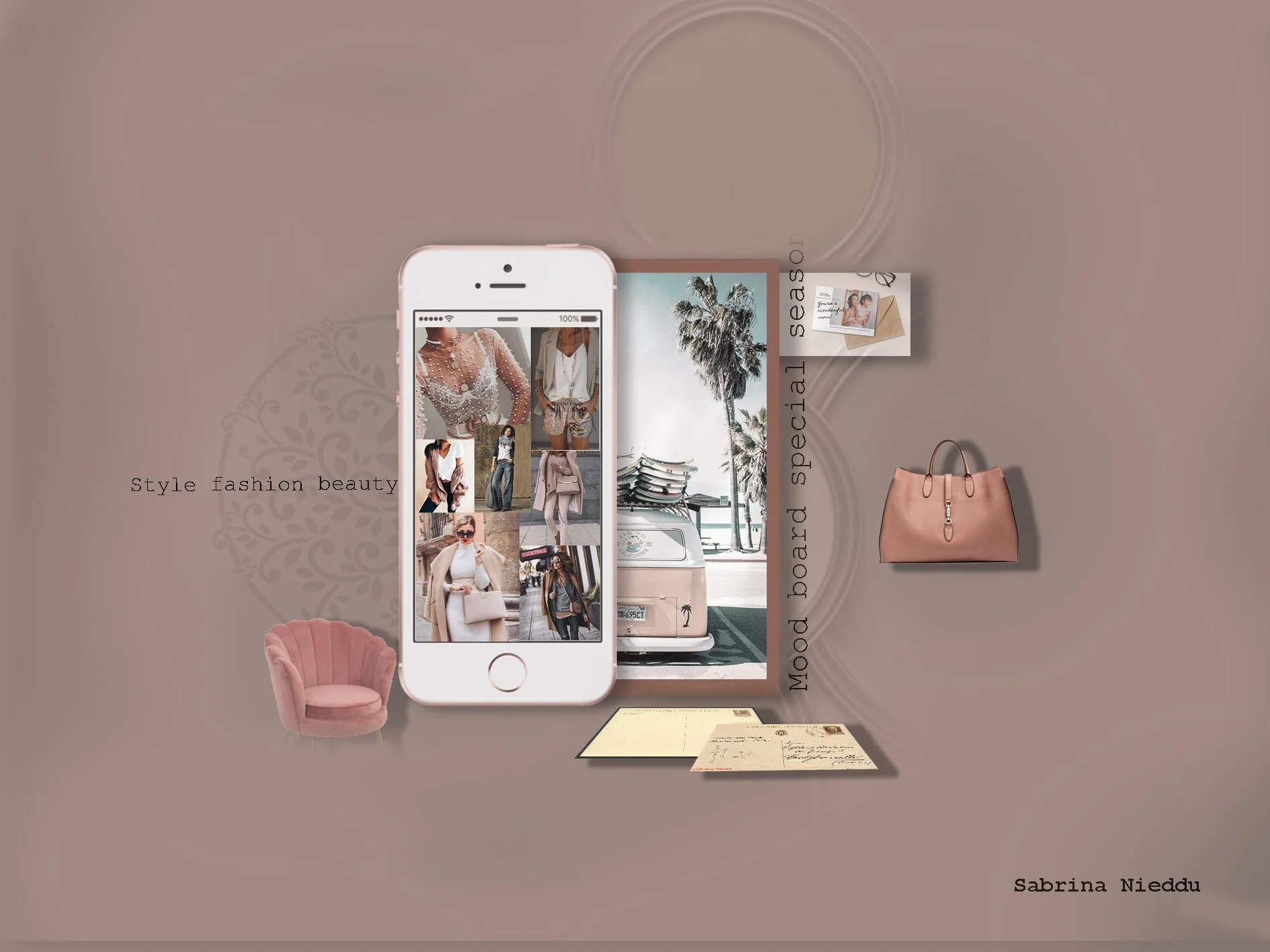 Attraverso l'accurata selezione di immagini, il moodboard definisce l'identità visiva di una collezione, guidando le scelte stilistiche e cromatiche. Lo studio del moodboard è fondamentale per sviluppare un concept chiaro e coeso per una collezione. Raccolte da diverse fonti, le immagini vengono armonizzate per creare una narrazione visiva che trasmette l'essenza del brand e ispira le successive fasi di progettazione.